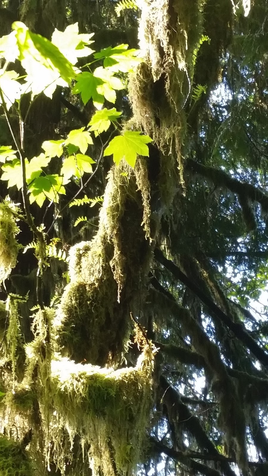 I love the way the dew drips from the moss, dangling like jewels on a thin strand of lace. This temperate rain forest gets an average of 12 feet of rain per year!